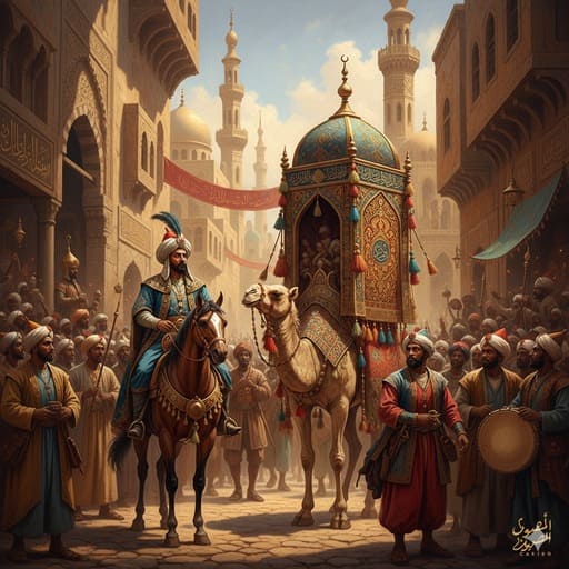 Salah satu tradisi paling ikonik yang terkait dengan peran Kairo dalam Jalur Haji Mesir adalah prosesi Mahmal. Mahmal adalah sebuah tandu berhias yang berisi kiswah (kain penutup Ka’bah) baru, yang secara simbolis dikirim oleh penguasa Mesir setiap tahun bersama kafilah haji. Prosesi keberangkatan Mahmal dari Kairo adalah peristiwa besar yang dirayakan dengan meriah, menarik ribuan penduduk dan peziarah untuk menyaksikannya.