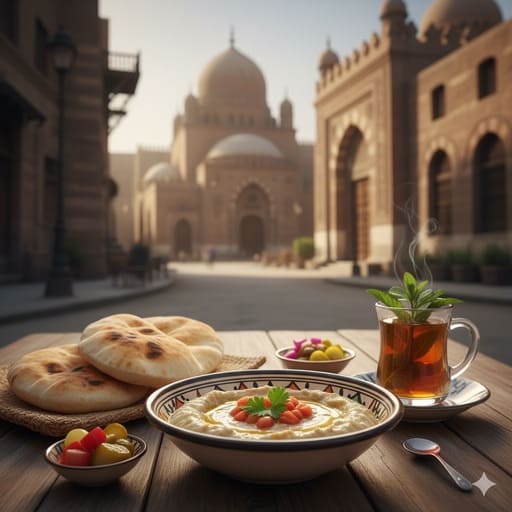 Ful Medames adalah hidangan sarapan pokok di Mesir, terbuat dari kacang fava yang dimasak perlahan dan disajikan dengan minyak zaitun, bawang putih, dan perasan lemon. Hidangan ini seringkali dinikmati dengan roti pita hangat dan acar. Meskipun sederhana, Ful Medames sangat bergizi dan memberikan energi yang cukup untuk memulai hari Anda menjelajahi masjid bersejarah di Darb al-Ahmar.